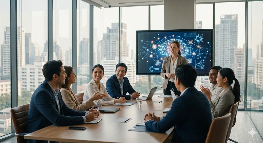 ZielFührungskräfte lernen, GenAI strategisch einzuordnen, sicher & compliant anzuwenden und konkrete KI-Use-Cases im eigenen Bereich umzusetzen. Ergebnis: KI-Roadmap, priorisierte Use Cases, Prompt-Set und AI-ACT.